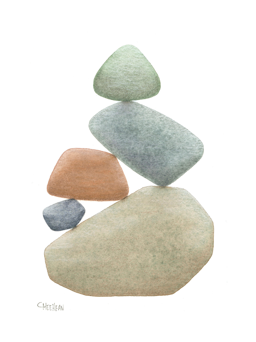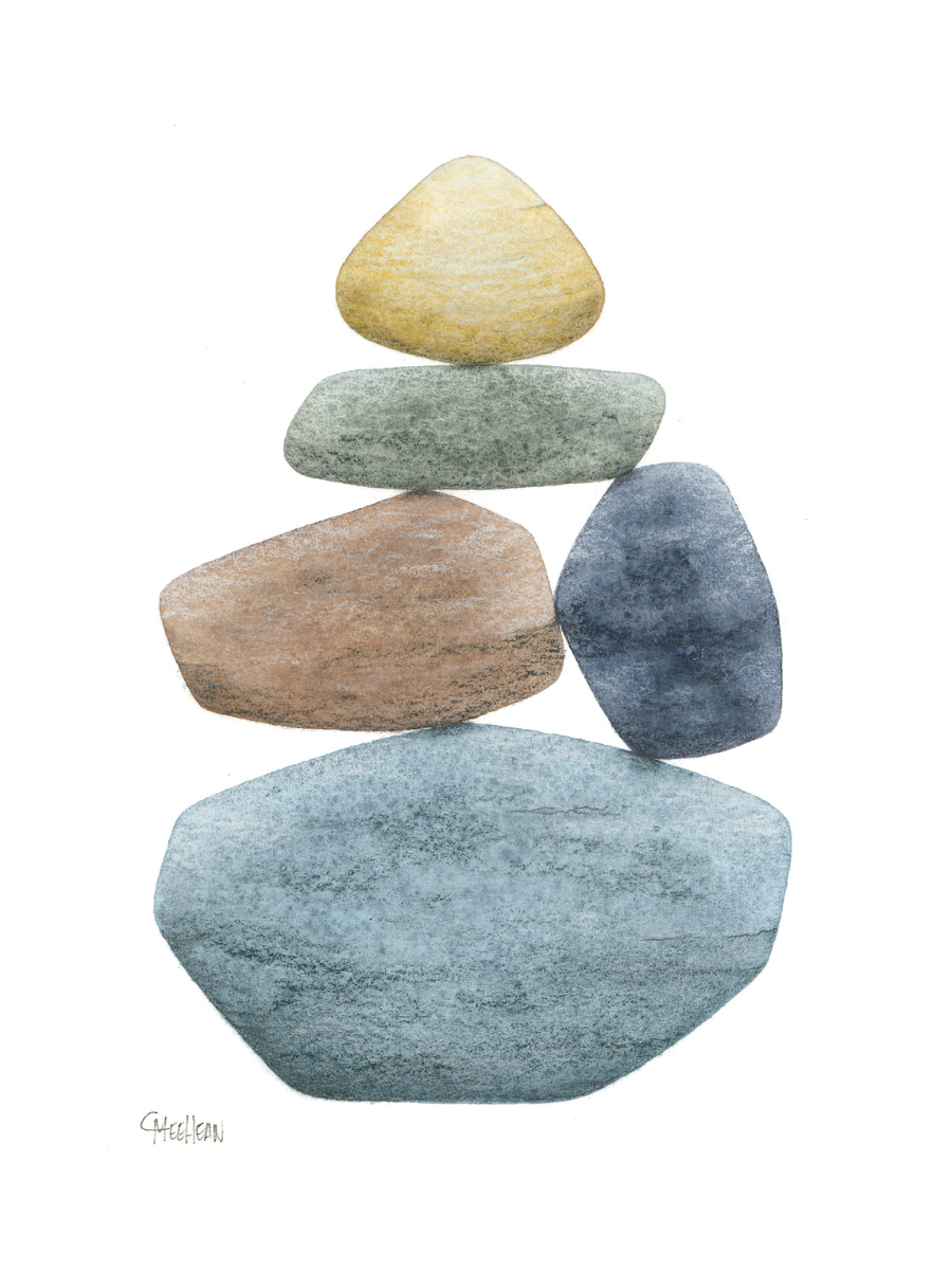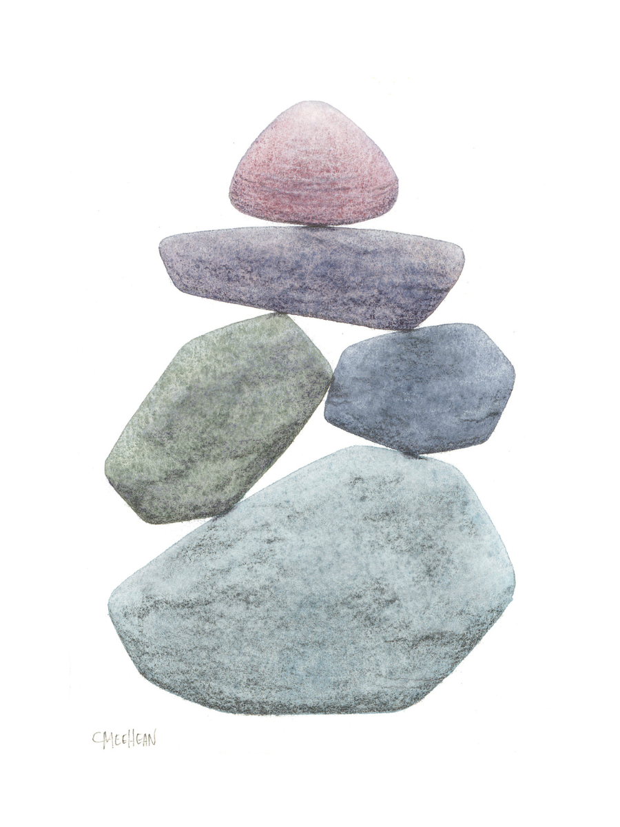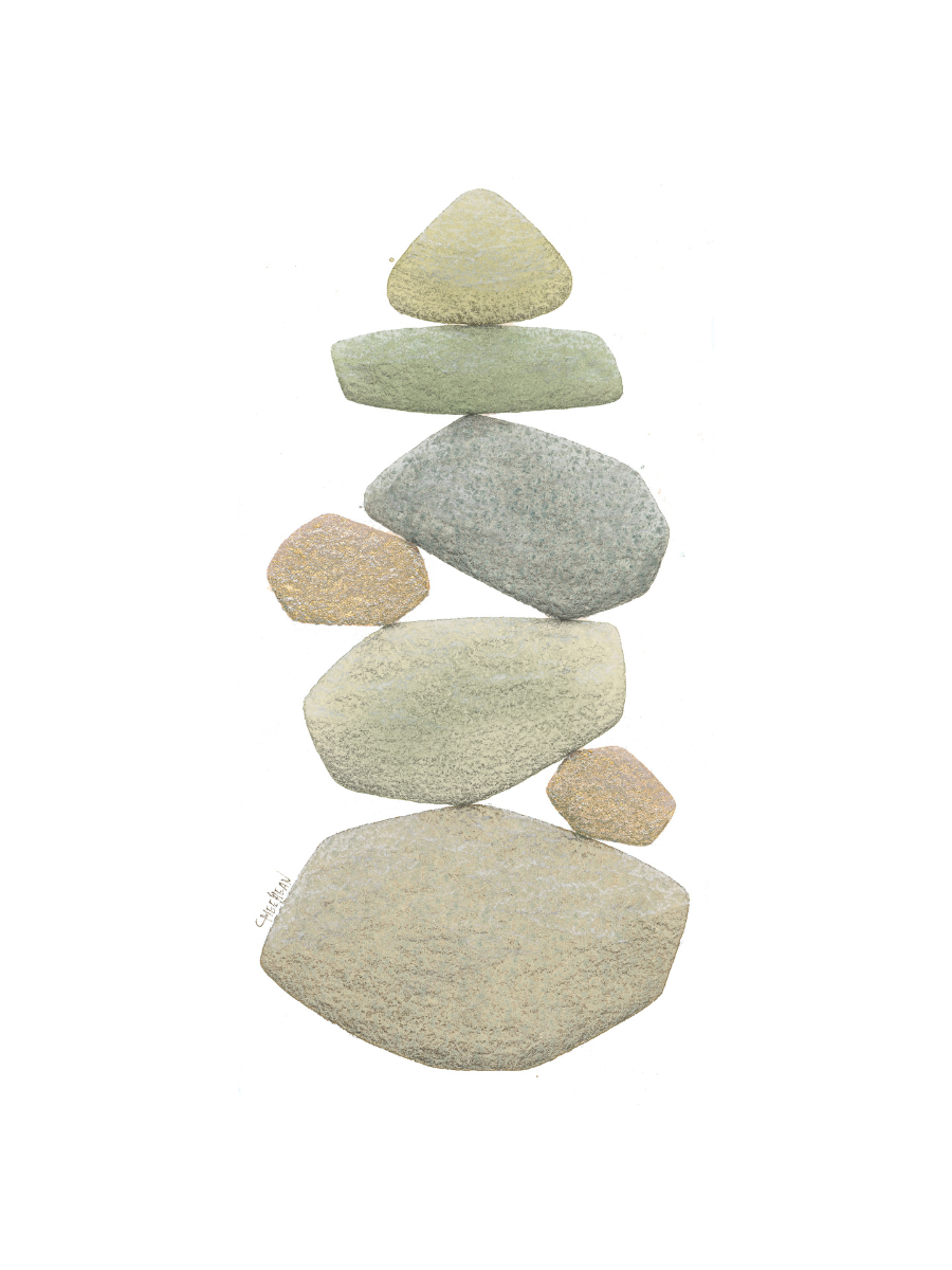 Caroline is a life-long creative who has always been drawn to the water and its treasures, specifically that of the Great Lakes. She shares her experience through watercolor paintings of stacked beach stones, illustrating the natural beauty that surrounds us and reminding us of the balance necessary to live a rich, fulfilling life.