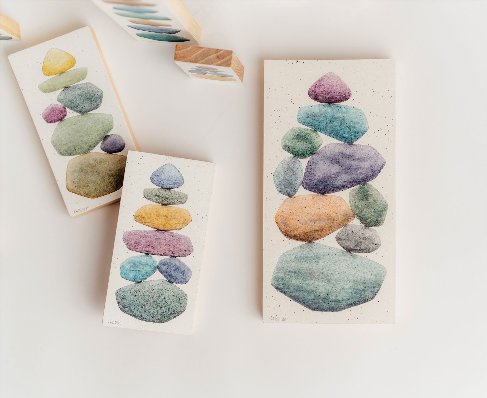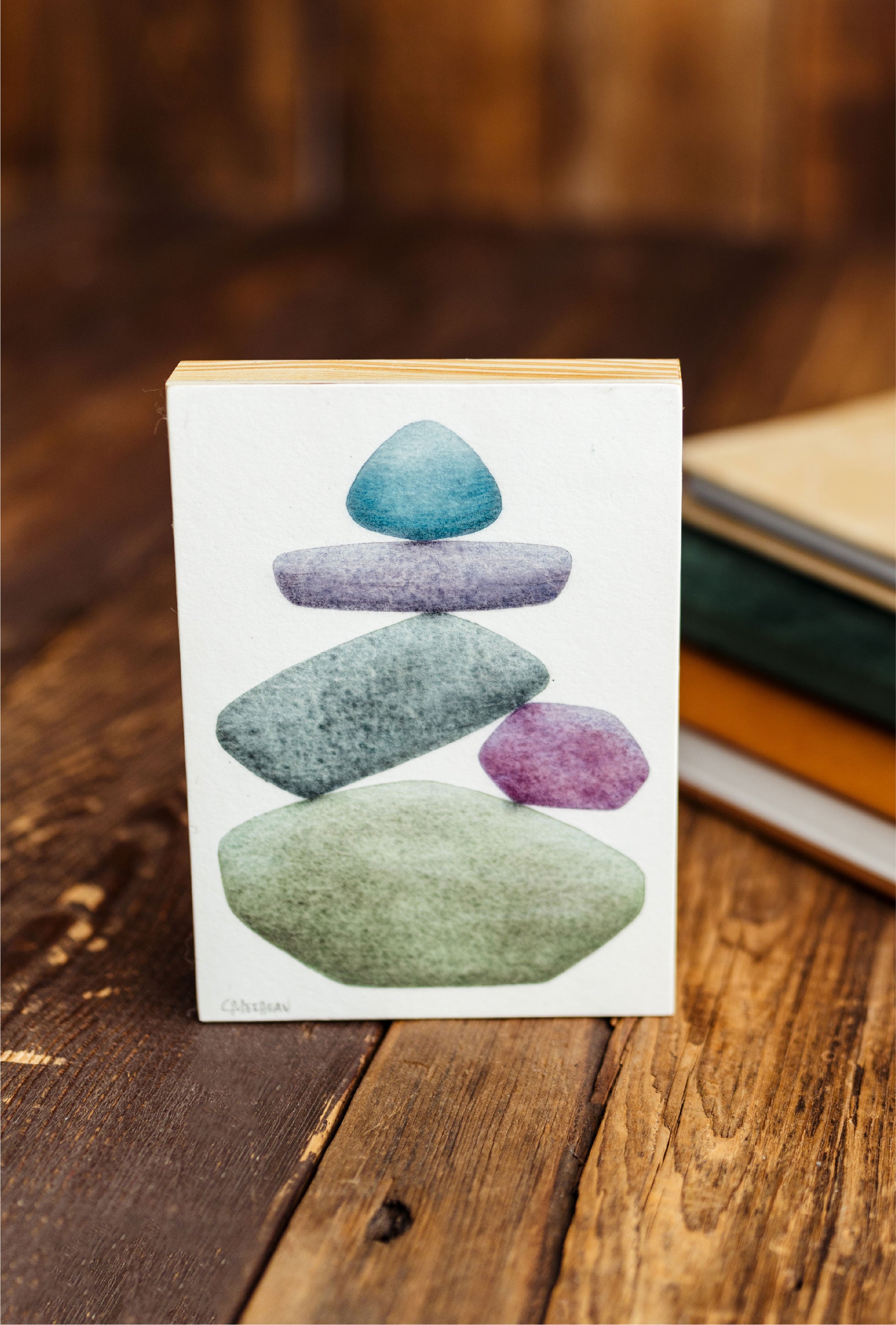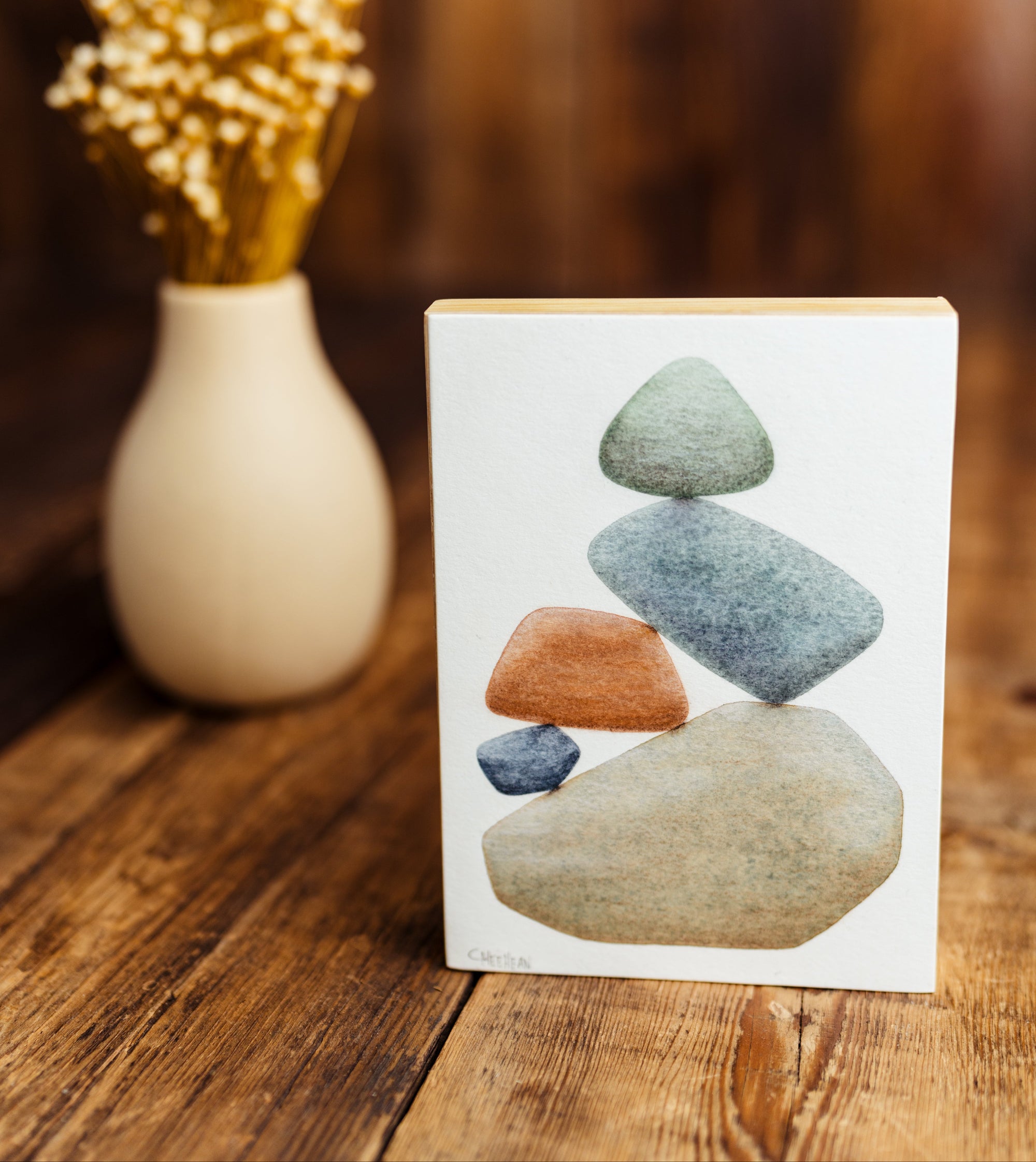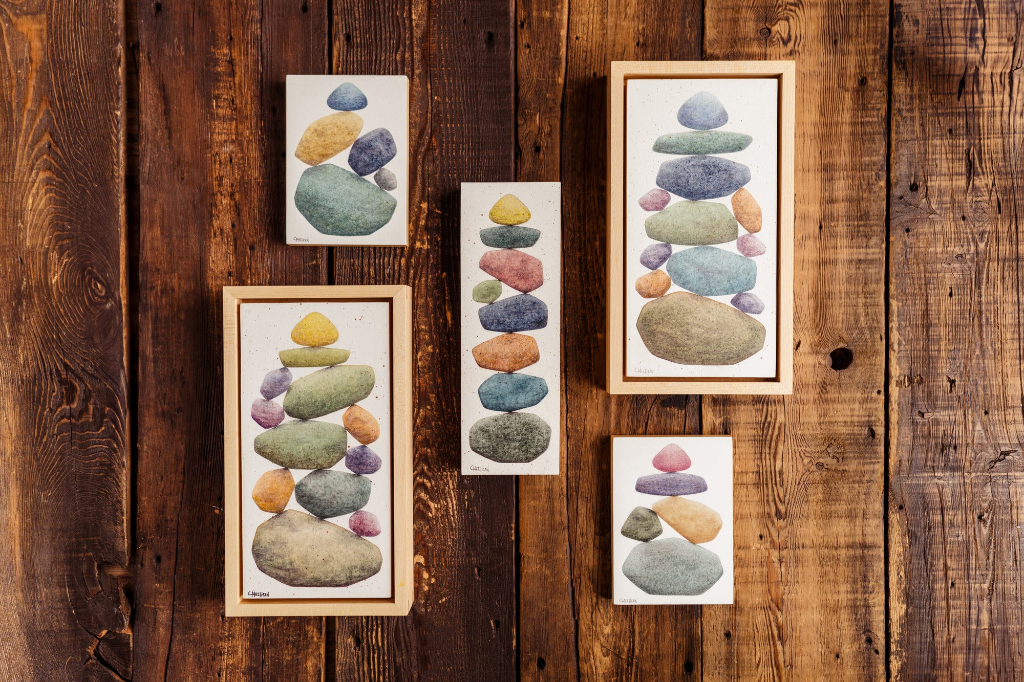 Caroline is a life-long creative who has always been drawn to the water and its treasures, specifically that of the Great Lakes. She shares her experience through watercolor paintings of stacked beach stones, illustrating the natural beauty that surrounds us and reminding us of the balance necessary to live a rich, fulfilling life.