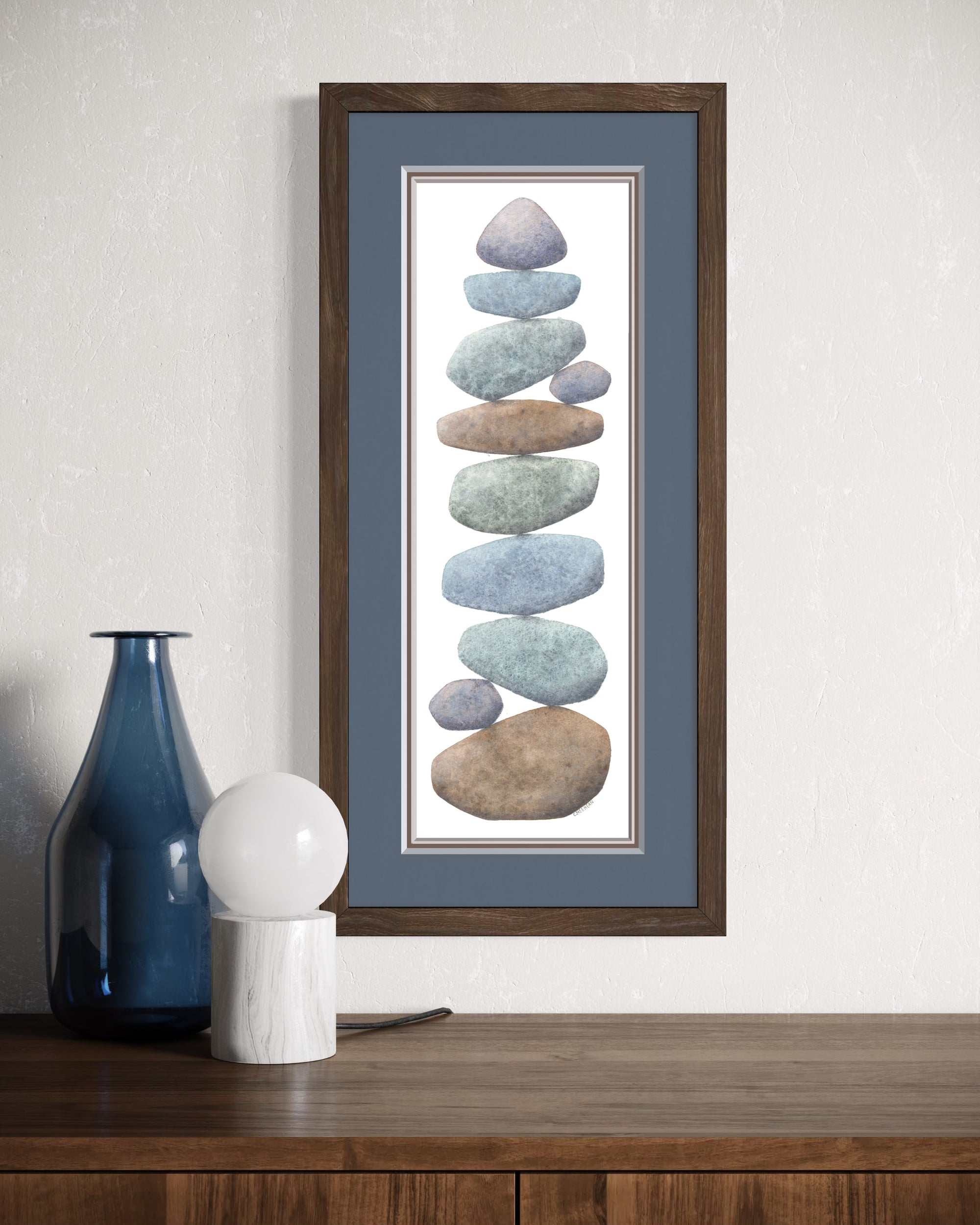 Caroline is a life-long creative who has always been drawn to the water and its treasures, specifically that of the Great Lakes. She shares her experience through watercolor paintings of stacked beach stones, illustrating the natural beauty that surrounds us and reminding us of the balance necessary to live a rich, fulfilling life.